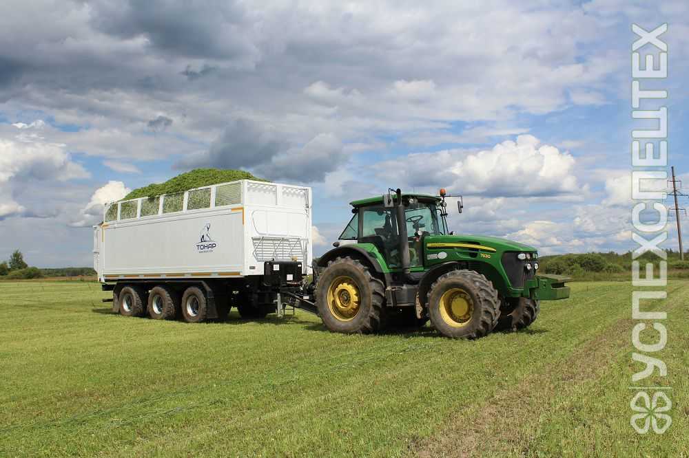 Новинка в линейке тракторных прицепов «Тонар»Модель предназначена для перевозки овощных контейнеров и цилиндрических тюков сена (соломы). Грузоподъемность – 14 000 кг., собственный вес - 4 000 кг.