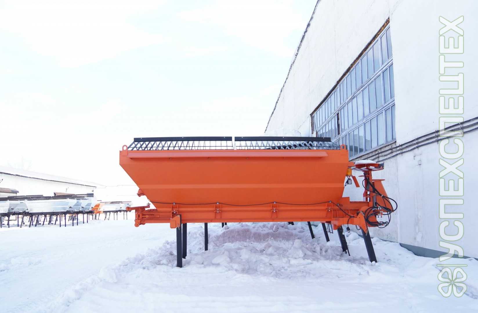 Обеспечивает безопасное распределение противогололедных материалов с возможностью регулирования по высоте разбрасывающего диска, ширине и направлению посыпки. Оборудован специальным устройством для полной загрузки бункера и исключающим зависание смеси на его стенках.