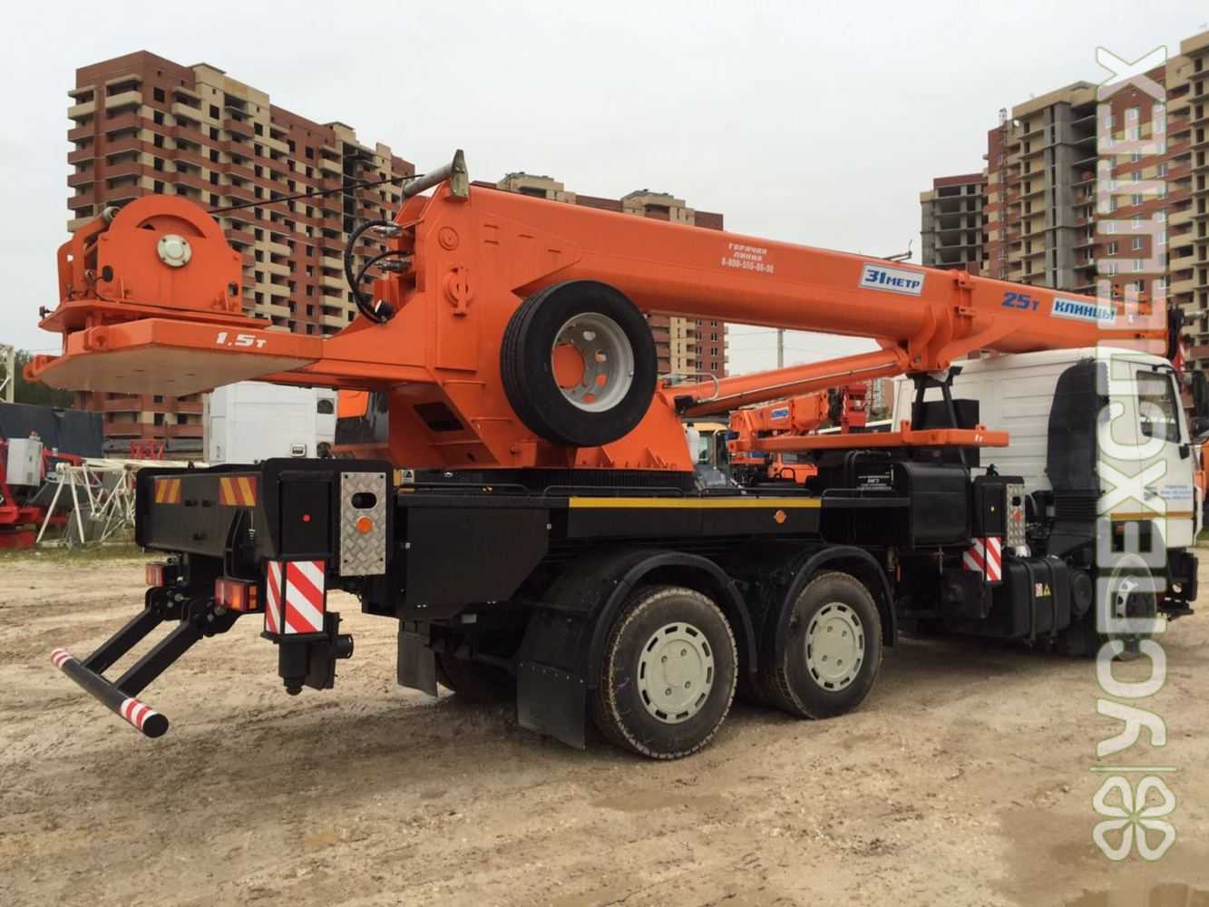 Кран автомобильный КС-55727-F, КС-55727-S грузоподъемностью миди (на канатах) 25 т предназначен для выполнения погрузочно-разгрузочных и строительно-монтажных работ c обычными грузами на рассредоточенных объектах.