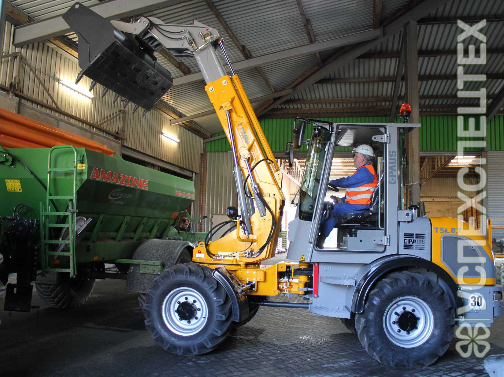 Емкость ковша, куб.м 1,0. Длина погрузчика с ковшом в транспортном положении, мм 5805. Ширина погрузчика по ковшу, мм 2000. Ширина погрузчика, мм 2000. Высота погрузчика по кабине, мм 2750. Эксплуатационная масса, кг 7400. Высота разгрузки ковша с выдвинутой стрелой при угле выгрузки 44°, мм 4080. Высота разгрузки ковша с выдвинутой стрелой по шарниру, мм. 5006. Высота подъема вил с выдвинутой стрелой, мм 4580. Максимальная грузоподъемность вил в транспортном положении, кг 2600.