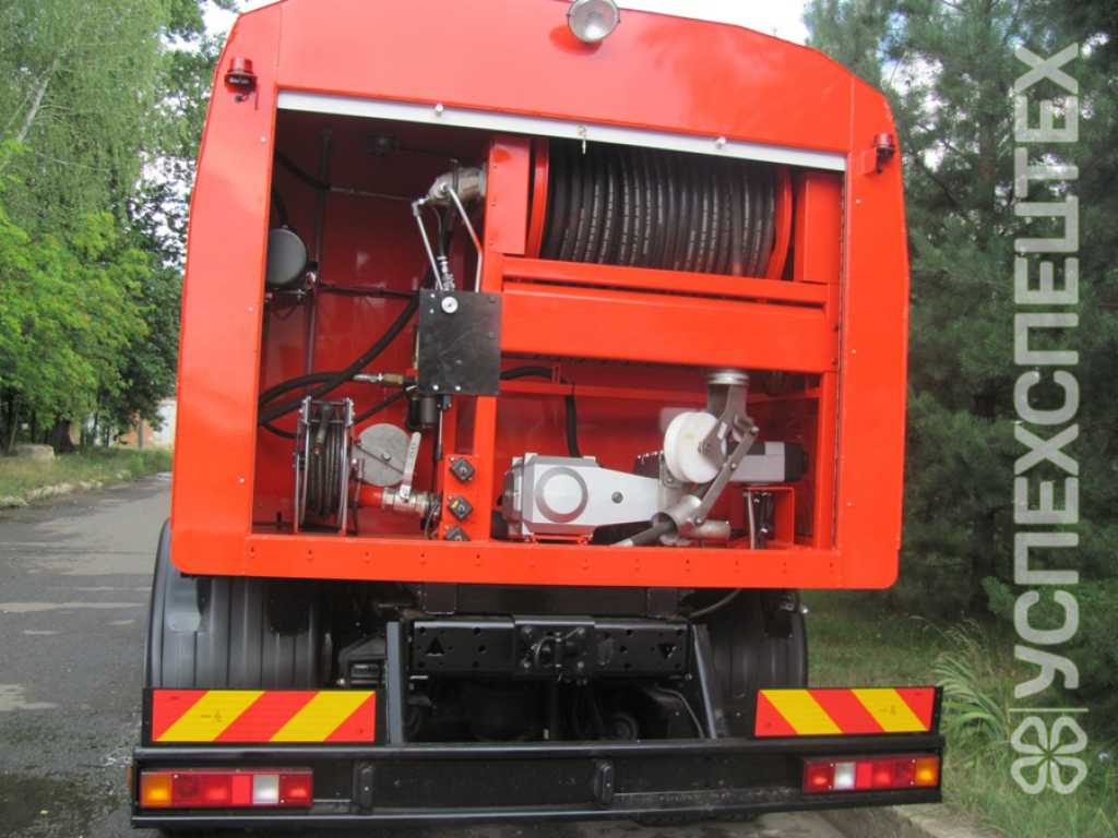 Специальное оборудование каналопромывочной машины КО-564-20 состоит из цистерны, водяного насоса с приводом, барабана с намотанным рукавом, гидравлической системы и вспомогательного оборудования.