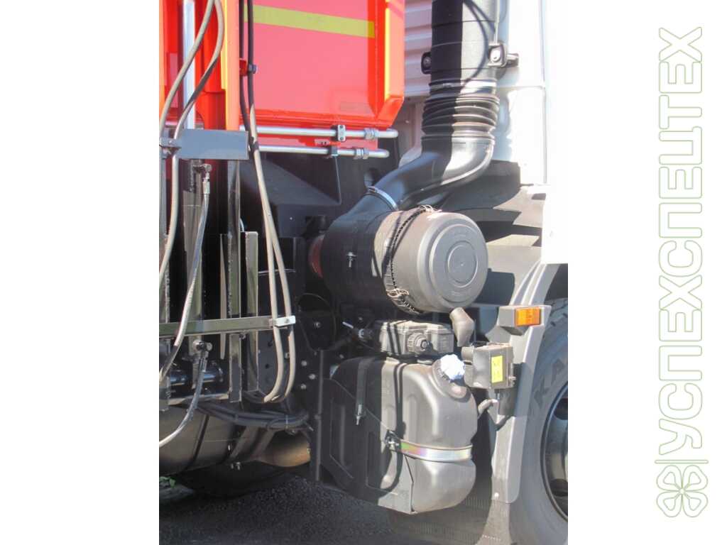В состав специального оборудования входят: кузов, задний борт, толкающая плита, боковой манипулятор, гидравлическая и электрическая системы.