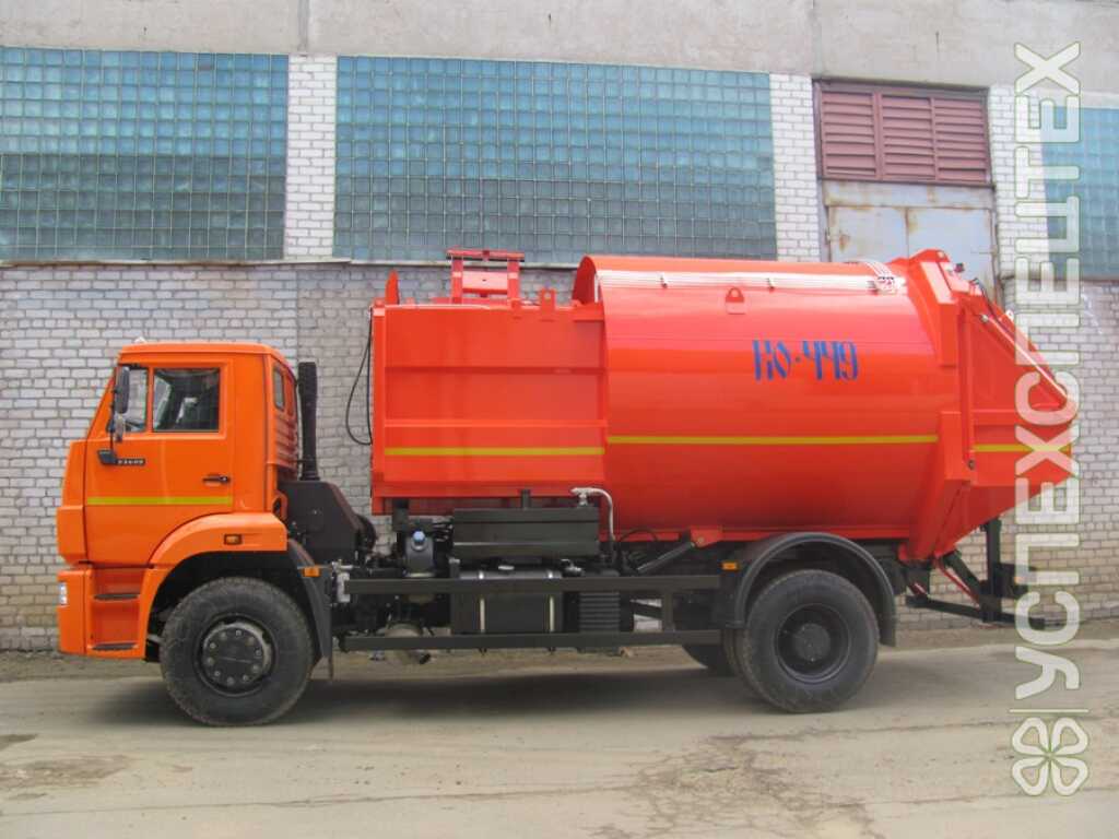 В состав специального оборудования входят: кузов с задней крышкой, уплотняющий механизм, выталкивающая плита, манипулятор, гидравлическая и электрическая системы. Загрузка отходов в пресс-камеру производится манипулятором. Уплотняющий механизм - это плита ковшового типа. Размещается в пресс-камере, совмещенной с загрузочным бункером. Выталкивающая плита производит выгрузку мусора из кузова. При загрузке кузова выталкивающая плита создает противодавление на мусор, обеспечивая его эффективное уплотнение. Пресс-камера выполнена из износостойкого материала HARDEX.