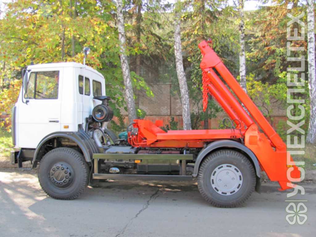 В состав спецоборудования входят следующие основные узлы: надрамник, стрела, контейнер, аутригеры, гидросистема, система трубопроводов, электрооборудование.