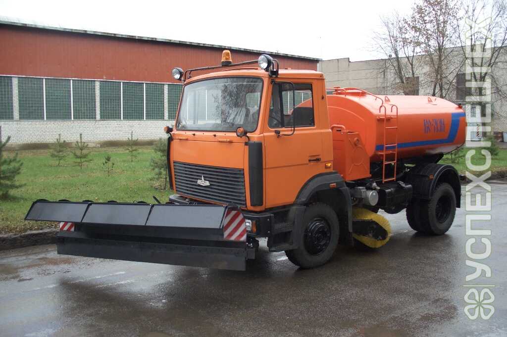 В летний период машина используется для мойки, поливки, очистки от грязи и пыли дорожных покрытий, а также для мойки прилотковой полосы и поливки зеленых насаждений и газонов.