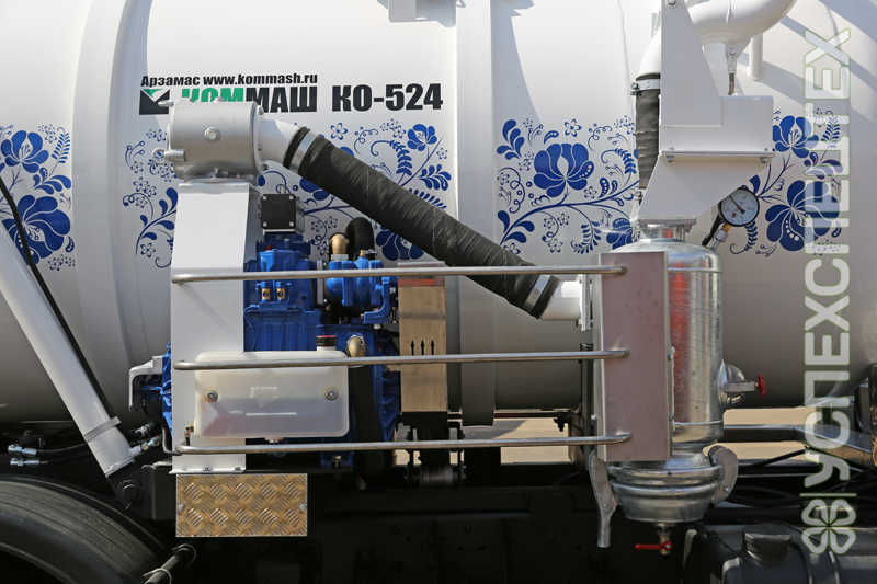 В состав специального оборудования входят цистерна, вакуумный насос с приводом, всасывающая стрела, гидравлическая, пневматическая и электрическая системы и дополнительное оборудование.