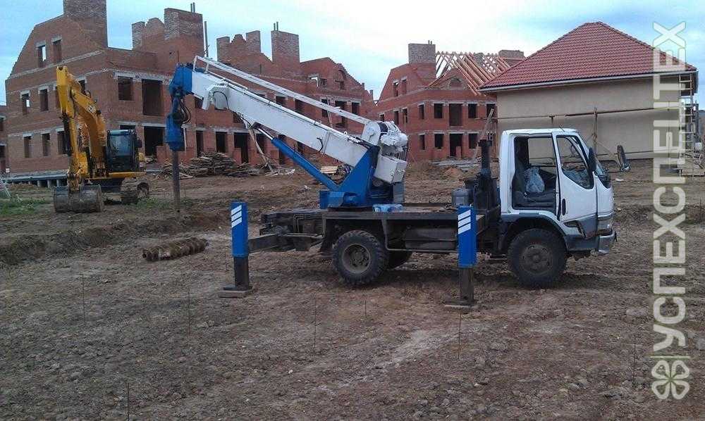 Ямобур на базе автомобиля Mitsubishi Canter. Диаметр шнеков от 250 до 1200 мм. Глубина бурения до 18 м. Вылет стрелы 12 м