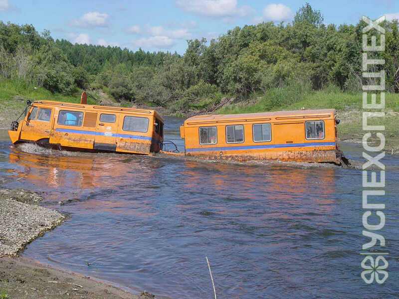 Снаряженная масса, кг 7850. Среднее давление на грунт, кг/см2 0,17. Максимальная скорость, км/ч 54. Максимальная скорость на плаву, км/ч 5. Количество мест в кабине 6. Количество спальных мест 2. Габаритные размеры (LxBxH), мм 6480х2940х2600. Ширина по корпусу, мм 2500. Двигатель Cummins-4ISBe185 Турбодизель, Р4, 4,5 л., 185 л.с.. Коробка передач 6-ст., механическая, ZF 6S 1000 (Германия). Управление автомобильного типа (рулевое колесо) с гидроусилителем ИЛИ рычажное управление (на выбор). Дополнительное оборудование * агрегат сварочный двухпостовой (или однопостовой). Номинальный сварочный ток, А до 400. Преодолеваемый подъем на твердом сухом грунте с полной нагрузкой, ° не менее 30. Допускаемый боковой крен на твердом сухом грунте, ° не менее 25. Минимальный радиус поворота, м 2,2.