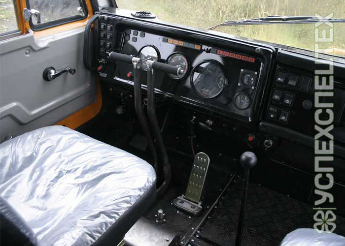 Снаряженная масса, кг 6700. Среднее давление на грунт, кг/см2 0,17. Максимальная скорость, км/ч 54. Максимальная скорость на плаву, км/ч 5. Количество мест до 14. Количество спальных мест до 6. Габаритные размеры (LxBxH), мм 6480х2940х2600. Габаритные размеры: ширина по корпусу, мм 2500. Внутренние размеры рабочего салона(LxBxH), мм 2400х2200х1900. Двигатель Cummins-4ISBe185 Турбодизель, Р4, 4,5 л., 185 л.с.. Коробка передач 6-ст., механическая, ZF 6S1000 (Германия). Управление автомобильного типа (рулевое колесо) с гидроусилителем ИЛИ рычажное управление (на выбор). Дополнительное оборудование: установка статического зондирования грунтов УСЗ-15/36Г. Максимальное усилие вдавливания, кг 700. Скорость вдавливания зонда, м/мин 0,9-1,5. Скорость извлечения зонда, м/мин 2. Рабочее давление, кг/см2 80. Ход штока, мм 1250. Преодолеваемый подъем на твердом сухом грунте с полной нагрузкой, не менее 30°. Допускаемый боковой крен на твердом сухом грунте, не менее 25°. Минимальный радиус поворота, м 2,2.