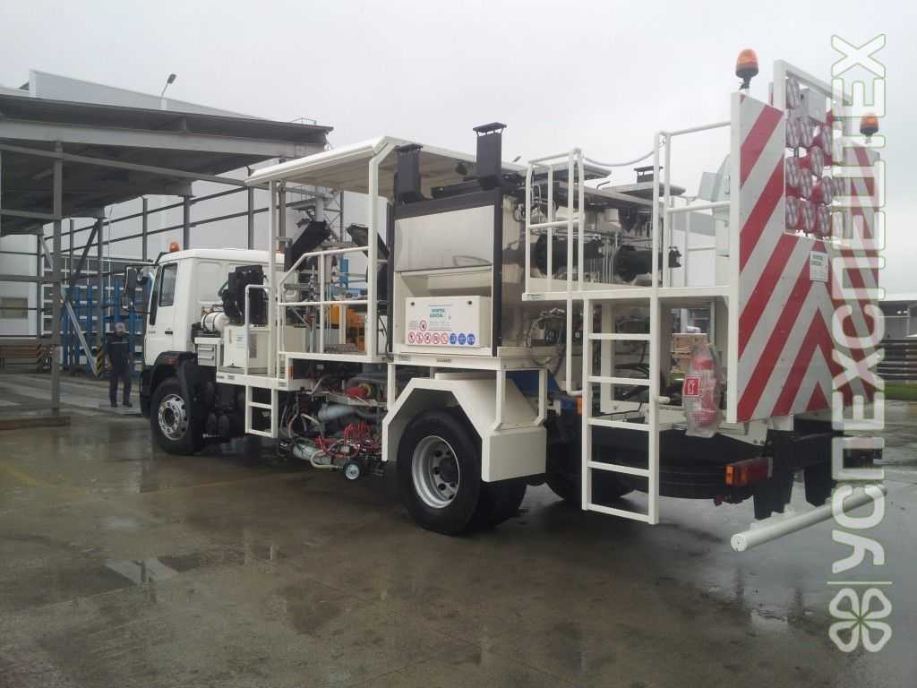 Машина для разметки холодным спрейпластиком. Внутреннее смешивание в смесительной головке. Оснащается разметочным компьютером. Запуск двигателя электростартером. Подача стеклошариков. Скорость передвижения до 16 км/час. Два бака для компонентов и бак для растворителя. Съёмный пистолет для спрейпластика и стеклошариков. Автоматическая промывка.