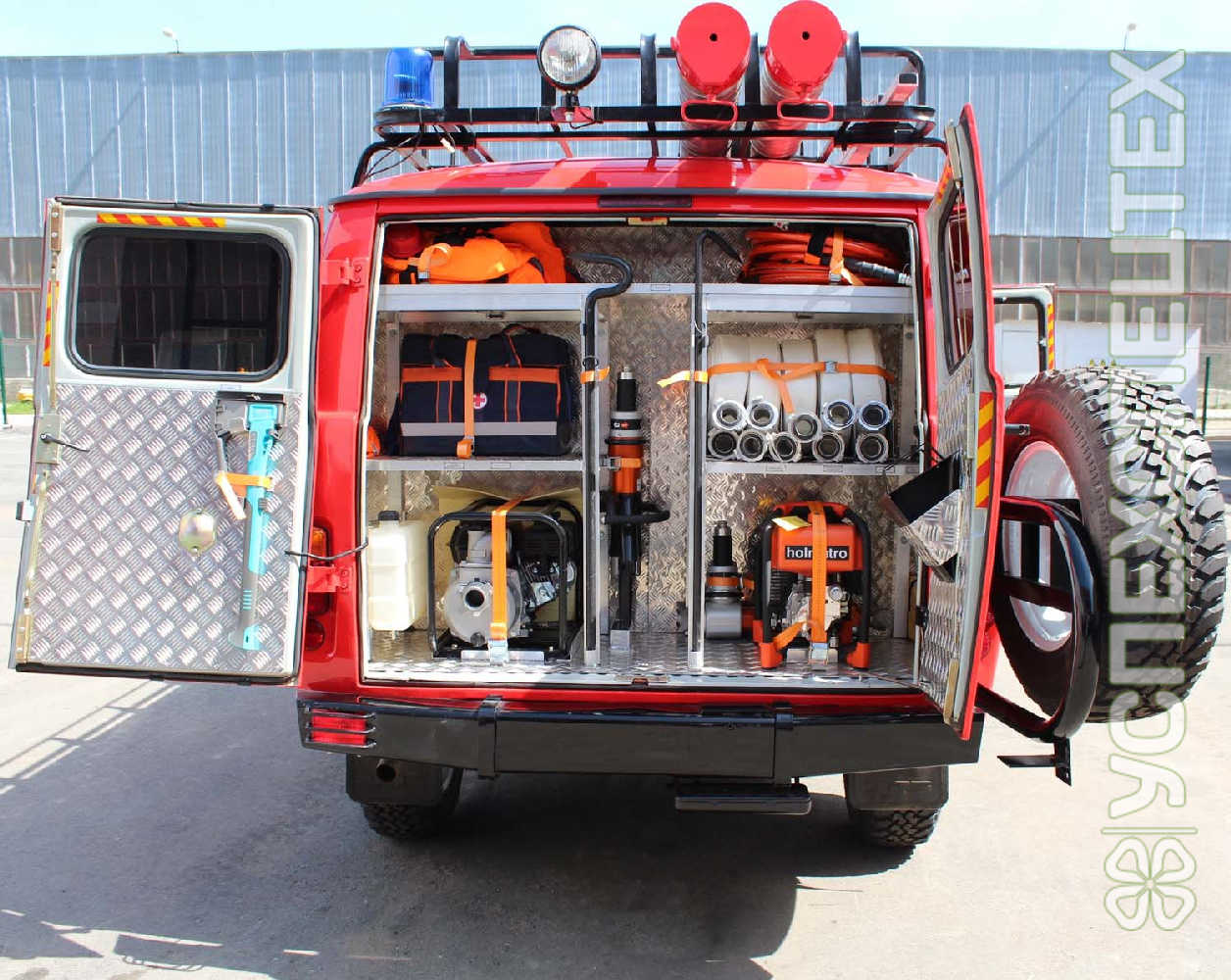 Бюджетный малогабаритный многофункциональный пожарный автомобиль АПП-0,3-2,0-NATISK (3909): с емкостью всего 300 литров воды способен подать до 6 000 литров высокоэффективного огнетушащего вещества!!! Работает от компрессора (имеет неограниченный запас воздуха на вспенивание). Имеет возможность дозаправки во время тушения. Имеет возможность выбора используемого пенообразователя. Имеет колесную формулу 4х4.