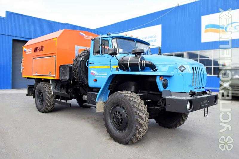 УМПП-400 УЗСТ 6892-02 на шасси КАМАЗ-43502-3036-45/3038-45 без спального места, вентилятор ВР-280-46-5, горелки Riello RG4S (220 В) – 2 шт., бак топливный 350 л., теплообменник - двухсекционный трубчатый из нержавеющей жаропрочной стали, количество выводов для рукавов - 3, вместимость пеналов для рукавов - 10, средства безопасности.