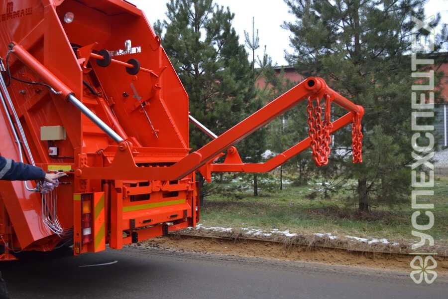 В состав специального оборудования входят: кузов, задний борт, толкающая плита, боковой манипулятор, гидравлическая и электрическая системы.