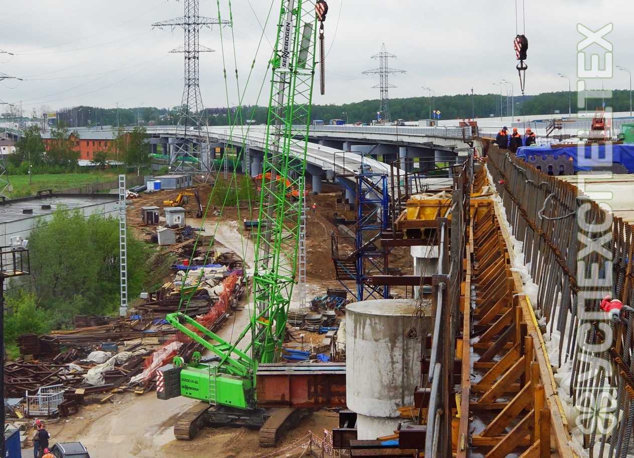 Гусеничный кран SENNEBOGEN 5500 оснащен главной стрелой 35,50 м. Он надежно поднимает многотонные мостовые блоки и устанавливает их на нужную позицию. Кран грузоподъемностью 180 т приводится в действие дизельным двигателем мощностью 261 кВт.
