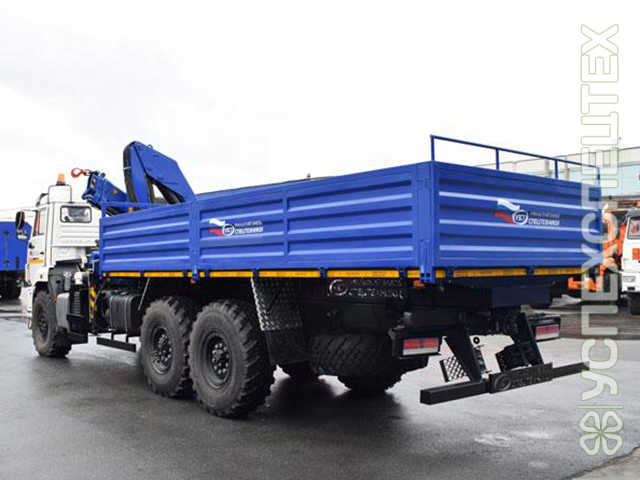 6х6, 300 л.с., коробка передач Камаз-154, КМУ: грузовой момент 15 тм, вылет 18,7 м, г/п 6,5 т. Тип двигателя Дизельный с турбонаддувом и системой обработки отработавших газов. Количество и расположение цилиндров 8, V-образное. Рабочий объём цилиндров, см3 11762. Степень сжатия 18. Максимальная мощность, кВт 221 (300 л.с.). Максимальный крутящий момент, Н*м 1275. Топливо Дизельное.