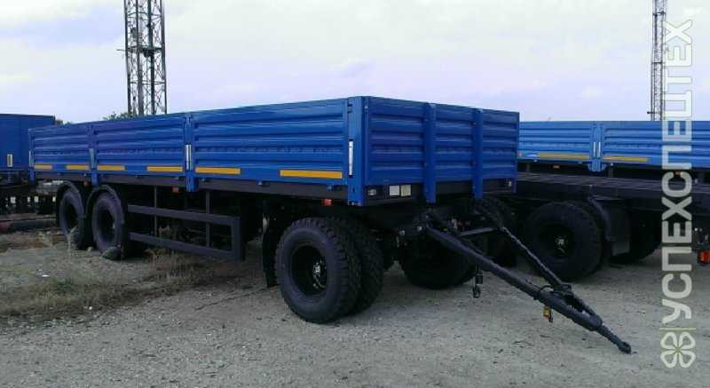 Прицеп бортовой предназначен для транспортировки различных грузов, в том числе сыпучих, а так же зерновых сельскохозяйственных культур. Бортовая платформа: стальная, прямоугольного сечения. Боковые и задние борта платформы сочленены из двух бортов. Верхний борт – неподвижный, жестко крепится к стойкам платформы. Нижний борт – подвижный с верхней навеской, шарнирно крепится к нижней кромке верхнего неподвижного борта. Запоры бортов – механические, открываются вручную. Конструкция платформы включает в себя две пары стяжек средних стоек, увеличивающих жесткость кузова в поперечном направлении. Платформа оснащена быстросъемным тентом. Тент сворачивается в продольном направлении с помощью наматывающего устройства. В передней части платформы имеется откидная площадка для удобства обслуживания тента.