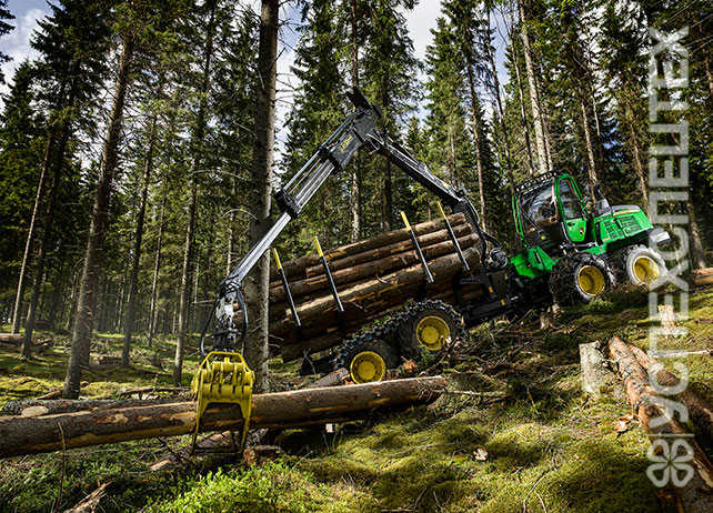 В лесозаготовительных работах важную роль играет такое транспортное средство, как форвардеры. С помощью форвардеров осуществляются сбор, сортировка и доставка сортиментов от того места, где проводится заготовка, до дороги или склада. С точки зрения конструктивных особенностей форвардер – это самоходная двухмодульная машина, в состав которой входят погрузочный манипулятор и грузовая тележка. Современный форвардер оснащается шести- или восьмиколесным шасси, который имеет гидростатическо-механическую трансмиссию, благодаря которой машина легко преодолевает любые рельефные особенности местности.