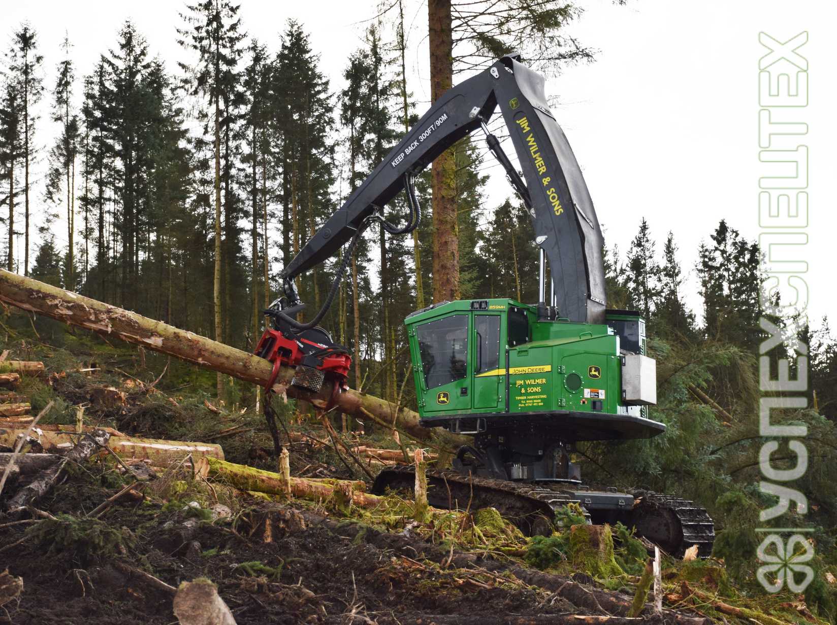 Харвестер является универсальной лесозаготовительной машиной, которая может выполнять валку деревьев, обрезку сучьев, раскряжевку и обмер полученной древесины. Харвестерная головка, состоящая из сварной металлической рамы, – это центральный элемент машины. На нее вмонтированы захватные рычаги, которые управляют гидроцилиндрами. На концах гидроцилиндров расположены гидравлические моторы, а на их выходных валах установлены подвижные вальцы протаскивающего механизма. Процесс валки леса начинается тогда, когда харвестерная головка подводится к стволу дерева.