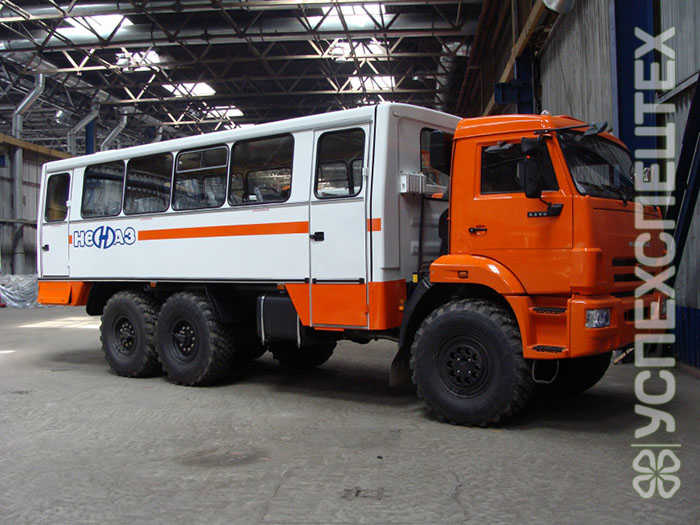 СПТС НЕФАЗ-4208 предназначено для перевозки вахтовых бригад по дорогам общей сети.