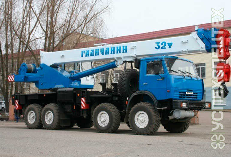 Грузоподъемность 32 тонны, вылет стрелы 30 м.