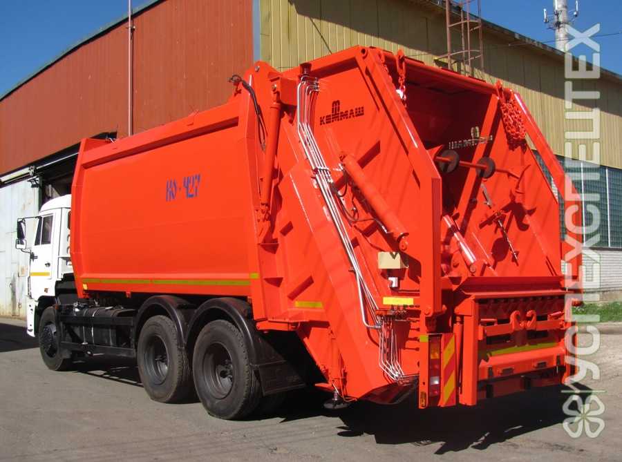 высокая степень уплотнения мусора (до 6), позволяющая загружать в кузов в зависимости от его вместимости и исходной плотности твердых бытовых отходов от 70 до 110 евроконтейнеров объемом 1,1 м³;