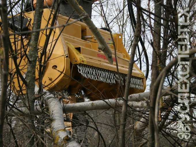 Мульчер BMS применяется на гидравлическом экскаваторе массой 13-25 т и параметрами гидросистемы: объемная скорость потока 80 - 260 л/мин, давлением 200 - 350 бар. Это идеальный инструмент когда необходимо расчистить от заросших деревьями и кустарником русла рек, места прокладки трубопроводов, лесные участки и другие труднодоступные места с густой растительностью. Отлично подходит при расчистке участков местности от пней.