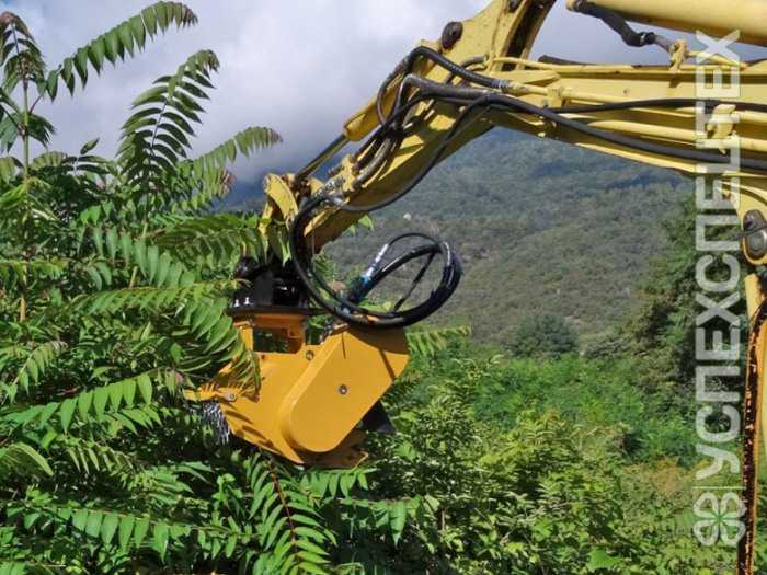 срезает и измельчает деревья, кусты и ветки до 25 см в диаметре;