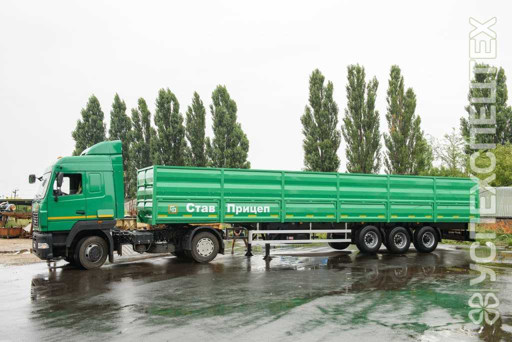 Полуприцеп бортовой предназначен для транспортировки зерновых сельскохозяйственных культур. Бортовая платформа: стальная, квадратного сечения. Боковые и задние борта платформы сочленены из двух бортов. Верхний борт – жестко крепится к стойкам платформы. Нижний борт – подвижный с верхней навеской, шарнирно крепится к нижней кромке верхнего неподвижного борта. Запоры бортов – механические, открываются вручную. Конструкция платформы включает в себя стяжки стоек, увеличивающих жесткость кузова в поперечном направлении.