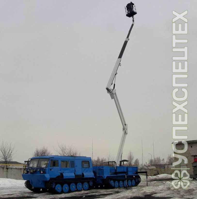 Гусеничный двухзвенный с гидроподъемником до 26 м. и люлькой ТТМ-4902 ГП Болотоходы вездеходы