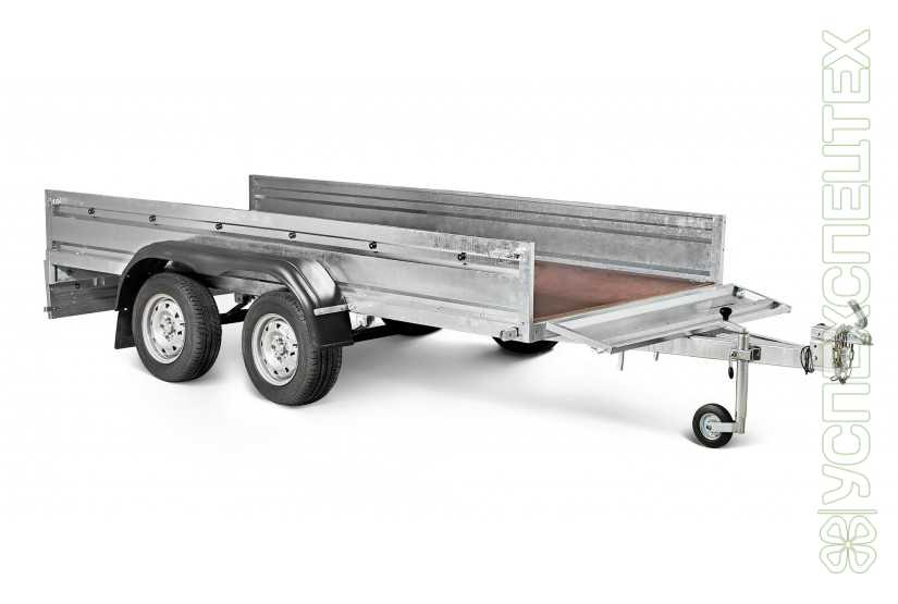 Борта прицепа высотой 30 см выполнены из оцинкованной стали с цветным полимерным покрытием, рама окрашена гальванолом.