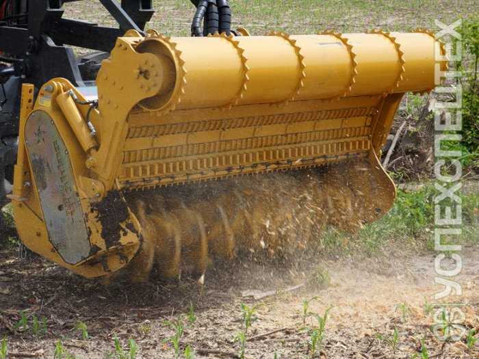 срезает и измельчает деревья, пни, кусты диаметром до 40 см;