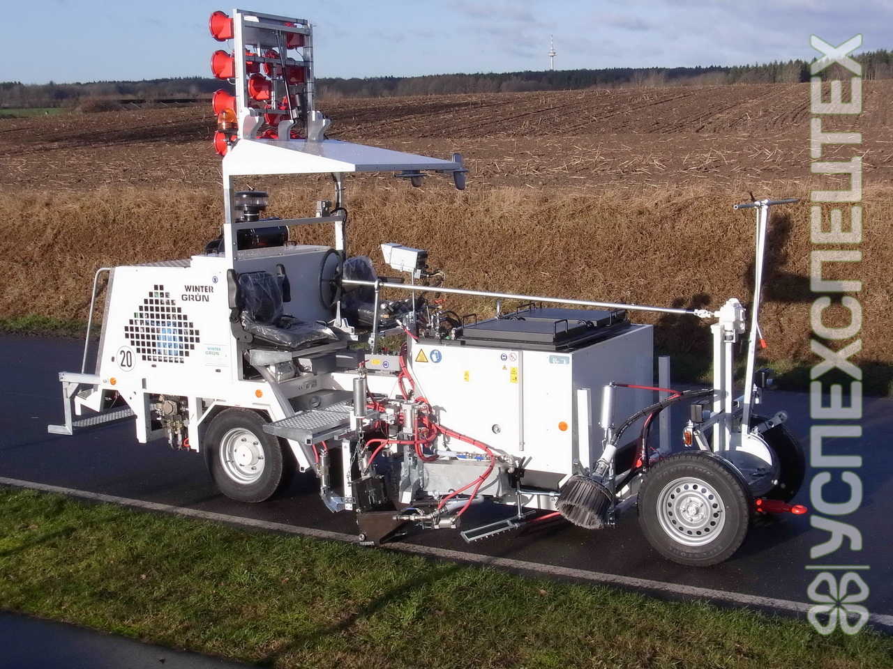 Машина для разметки холодным спрейпластиком. Внутреннее смешивание в смесительной головке. Оснащается разметочным компьютером. Запуск двигателя электростартером. Подача стеклошариков. Скорость передвижения до 16 км/час. Два бака для компонентов и бак для растворителя. Съёмный пистолет для спрейпластика и стеклошариков. Автоматическая промывка.