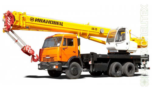 Грузоподъемность 25 тонн, вылет стрелы 22,28,31 м. Есть вездеходы.