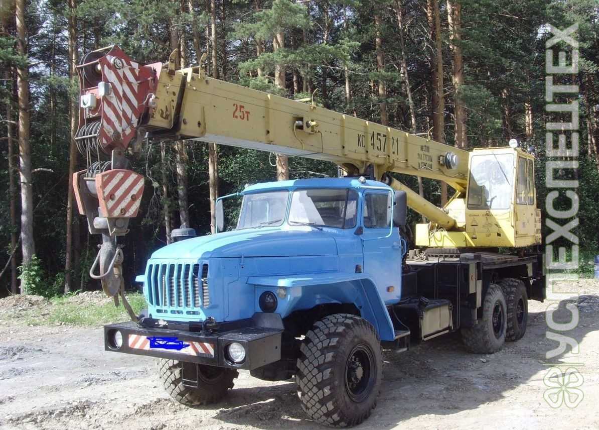 Модель из серии автомобильных кранов грузоподъемностью 25 тонн, на односкатном вездеходном шасси УРАЛ-4320. Представляет собой мощную машину с высокими характеристиками проходимости по бездорожью. Он не обладает большой скоростью, и не сможет ехать быстрее 60 км/ч, но это компенсируется возможностью проехать к труднодоступным строительным площадкам, например, для строительства нефте- или газовых трубопроводов. Длина стрелы имеет общую длину 21.7 метров и позволяет перемещать грузы в радиусе 20 метров.