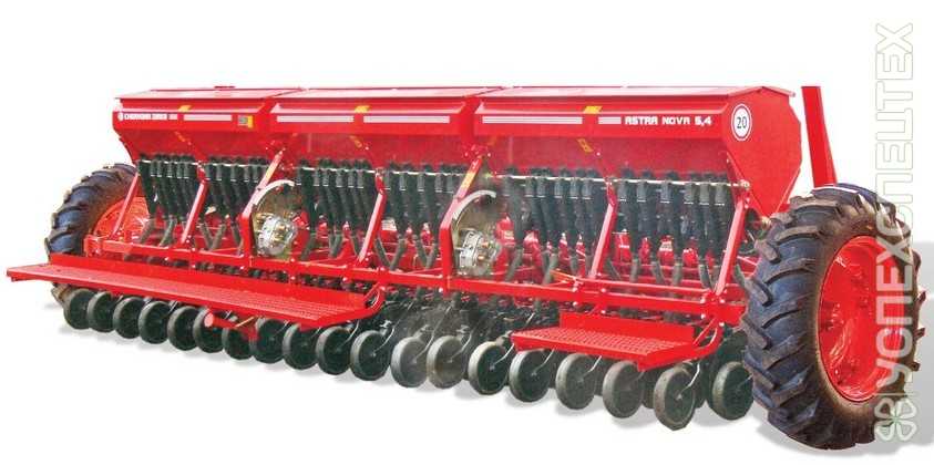 Сеялка "Астра СЗ 5,4" предназначена для рядового посева семян зерновых (пшеница, рожь, ячмень, овес), зернобобовых культур (горох, фасоль, соя, чечевица, бобы, чина, нут, люпин) с одновременным внесением минеральных удобрений. Может быть использована для посева семян других культур, близких к зерновым по размерам семян и нормам высева (гречиха, просо, сорго и др.).