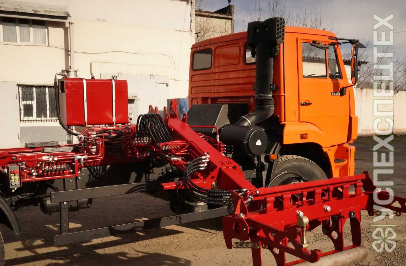 В состав специального оборудования входят: кузов, задний борт, толкающая плита, боковой манипулятор, гидравлическая и электрическая системы.