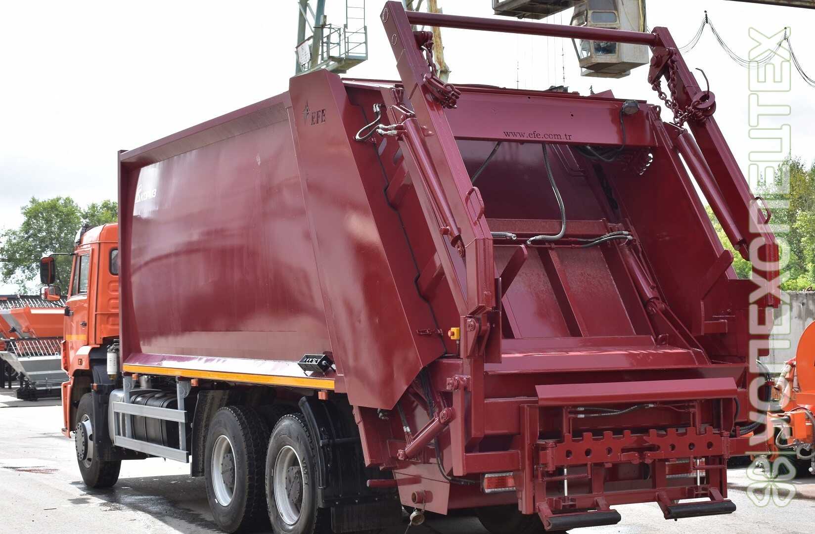 В состав специального оборудования входят: кузов с задней крышкой, уплотняющий механизм, выталкивающая плита, манипулятор, гидравлическая и электрическая системы. Загрузка отходов в пресс-камеру производится манипулятором. Уплотняющий механизм - это плита ковшового типа. Размещается в пресс-камере, совмещенной с загрузочным бункером. Выталкивающая плита производит выгрузку мусора из кузова. При загрузке кузова выталкивающая плита создает противодавление на мусор, обеспечивая его эффективное уплотнение. Пресс-камера выполнена из износостойкого материала HARDEX.