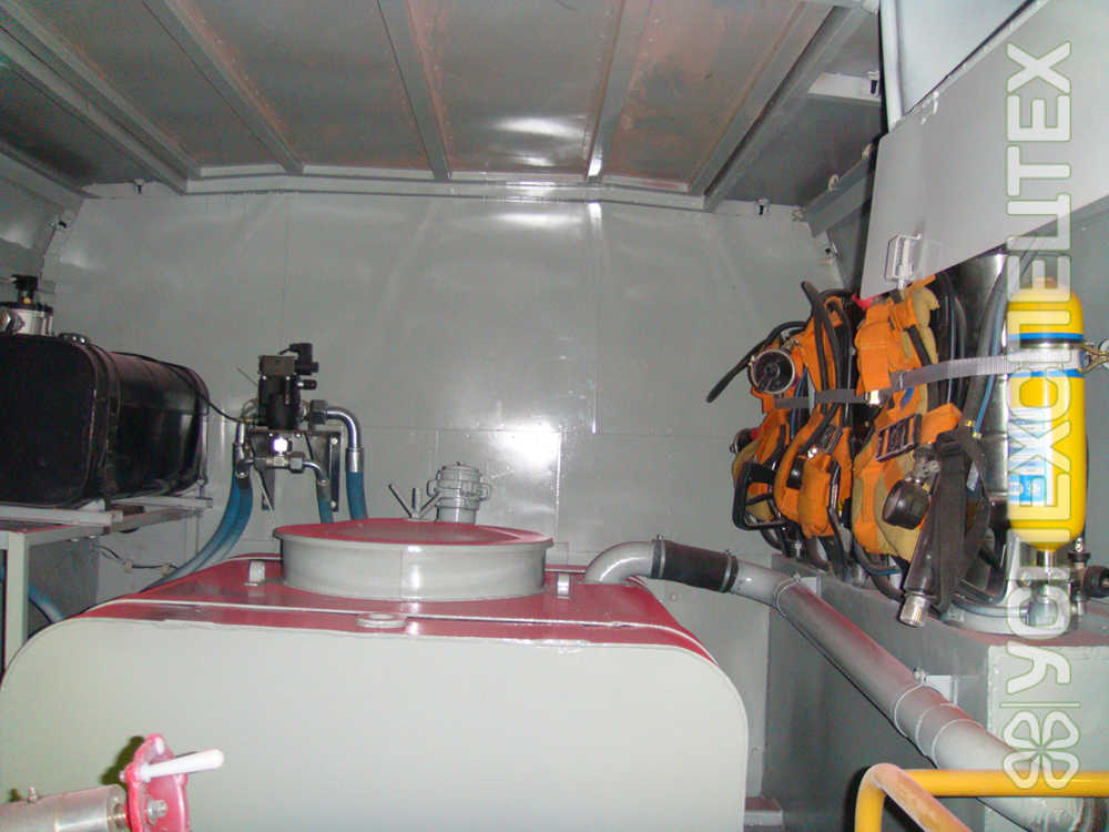 Машина с оборудованием для тушения пожаров в условиях труднопроходимой местности. Представляет собой плавающую машину высокой проходимости, снабженную шестиместной кабиной и цельнометаллическим салоном с пожарным оборудованием *. Организуется 2 полноценных спальных места. Эксплуатируется на грунтах с низкой несущей способностью, включая снежную целину без ограничения глубины снежного покрова, сыпучие пески, болота всех категорий и открытые водоемы. На большие расстояния машина может транспортироваться в кузове автомобилей типа КАМАЗ, МАЗ.