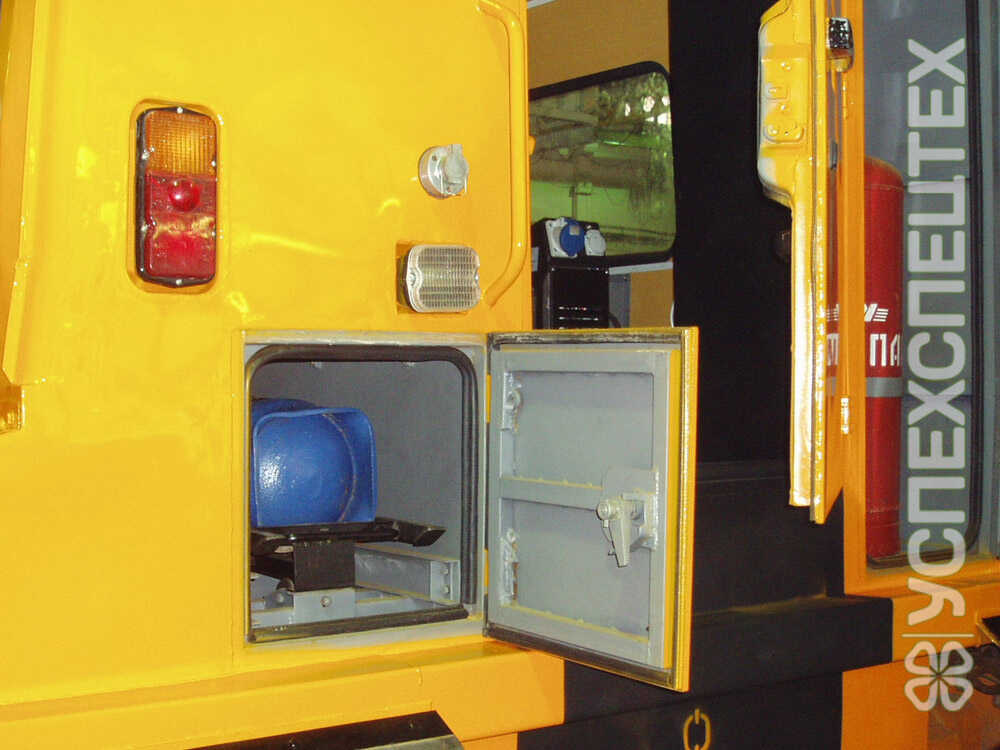 Машина с оборудованием для тушения пожаров в условиях труднопроходимой местности. Представляет собой плавающую машину высокой проходимости, снабженную шестиместной кабиной и цельнометаллическим салоном с пожарным оборудованием *. Организуется 2 полноценных спальных места. Эксплуатируется на грунтах с низкой несущей способностью, включая снежную целину без ограничения глубины снежного покрова, сыпучие пески, болота всех категорий и открытые водоемы. На большие расстояния машина может транспортироваться в кузове автомобилей типа КАМАЗ, МАЗ.
