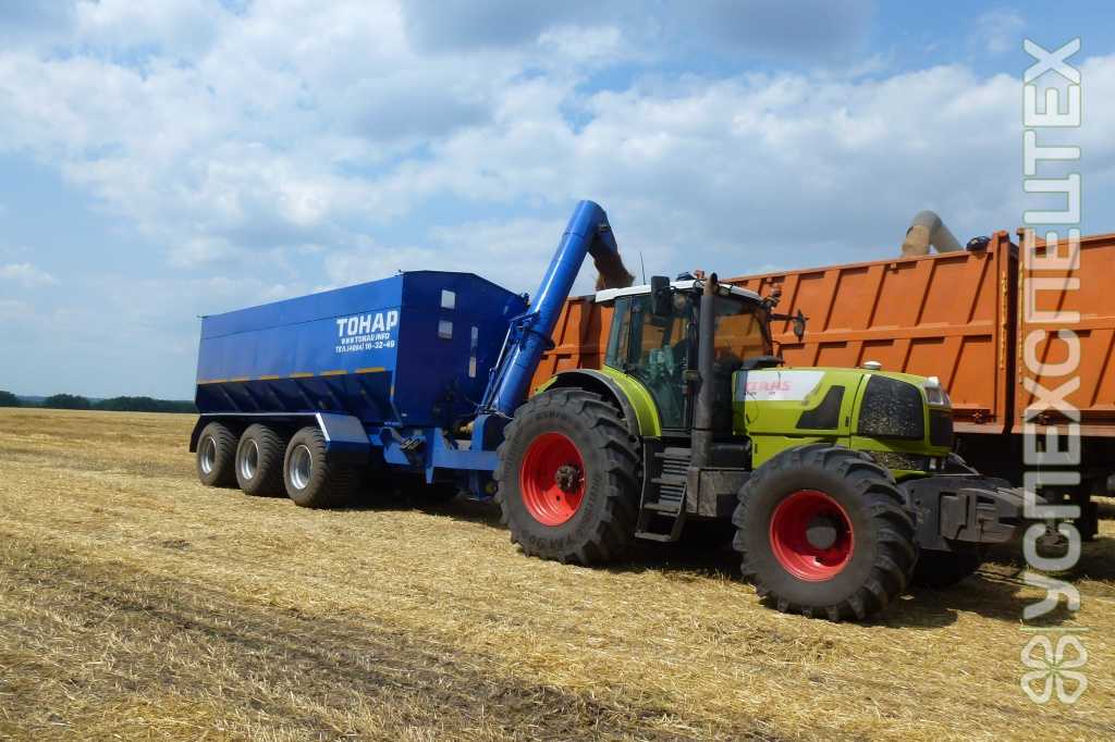 Объем кузова, куб.м. 36 Масса перевозимого груза, не более, кг. 29 000 Масса снаряженного полуприцепа (прицепа), не более, кг. 11 000 Распределение полной массы, кг. 2 500 (на сцепную петлю); 37 500 (на колесную тележку) Угол поперечного опрокидывания, градусов 30 Подвеска независимая балансирная с центральной осью вращения Оси Тонар Шины, диски 800/45 R26,5; 26,5×28 Давление на плодородный слой почвы, кг./см. 1,95; 1,57; 1,46; 1,2 Производительность выгрузного шнека, т/ч. 350 Диаметр выгрузного шнека, мм. 450 Привод шнеков выгрузной шнек - от ВОМ трактора через карданный вал с предохранительной муфтой; питающий шнек – от гидравлики трактора Гидросистема кол-во БРС - (1/2*) - 5 шт. Минимальный объём масляного бака трактора, л 80 Диаметр пальца сцепного устройства, мм. 50 Высота сцепной петли, мм. 1 000 Прицеп оборудован: - механическим тентом с боковой скруткой; - системой зачистных лючков; - системой гидравлических заслонок горизонтального шнека.