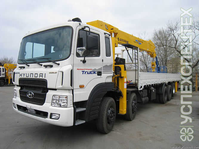 Бортовой автомобиль Hyundai HD120 с крановой установкой грузоподъемностью 5 тн популярен среди компаний, которые занимаются строительством или транспортировкой грузов.