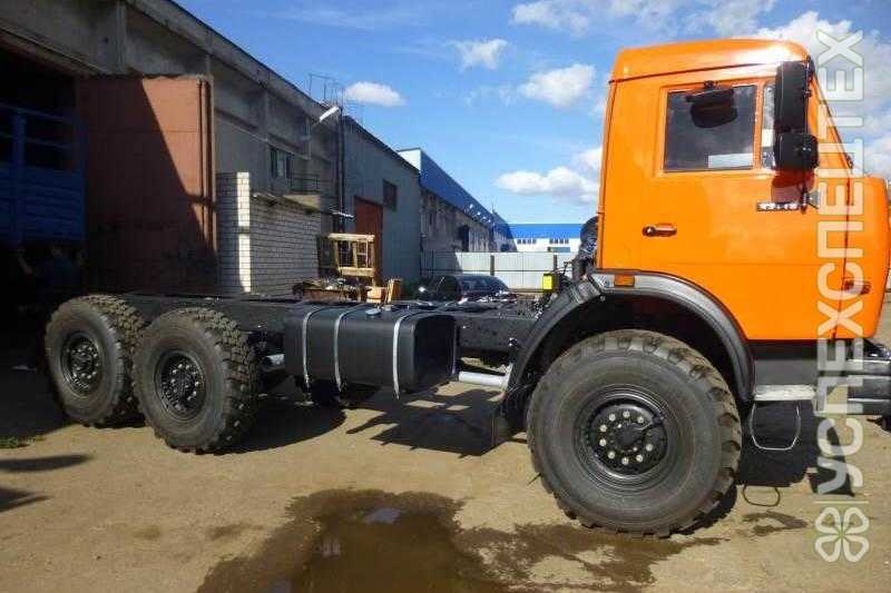 Особенности комплектации Шасси для лесовоза, сцепная петля, без держатель запасного колеса, без буксирного прибора, вывод к фонарю освещения площадки, кронштейны крепления надрамника 43204-2711047