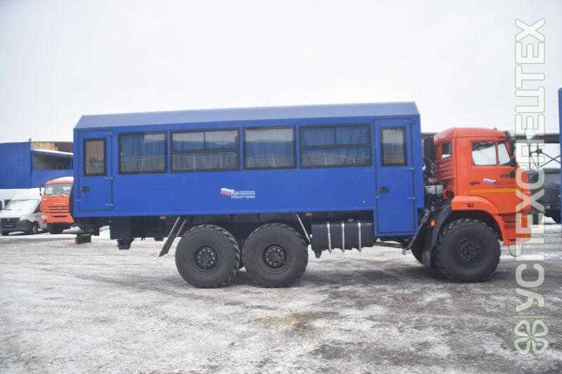 Вахтовый автобус на шасси КАМАЗ 5350 предназначен для перевозки вахтовых бригад по дорогам общей сети.